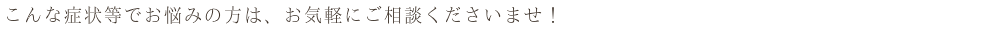 こんな症状等でお悩みの方は、お気軽にご相談くださいませ!