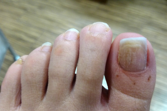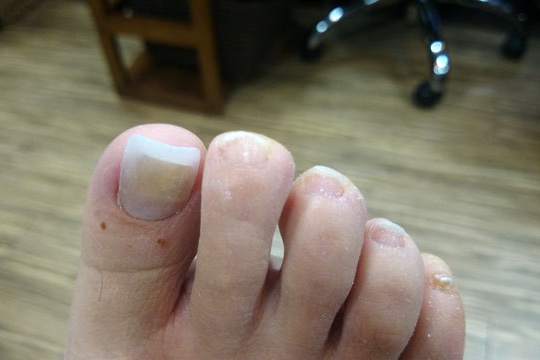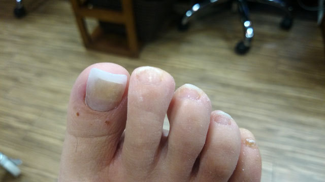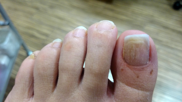 症例:この方は抗がん剤治療が終了して1年経過した方です。まき爪と爪が伸びなくて困っていました。