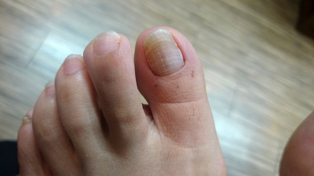 症例:この方は抗がん剤治療が終了して1年経過した方です。まき爪と爪が伸びなくて困っていました。