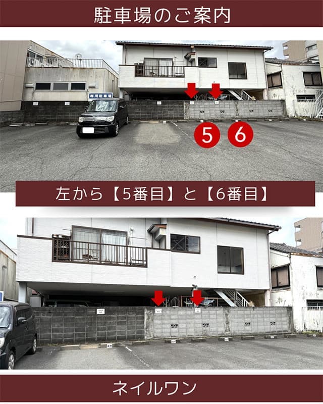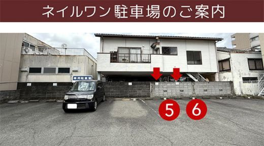 お車でご来店のお客様へ、ネイルワン専用駐車場をご利用ください。