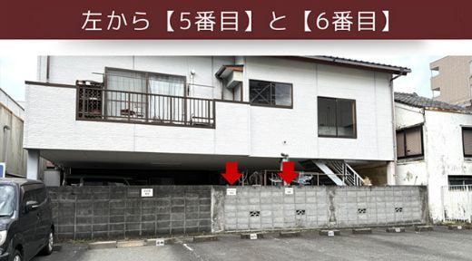 ●居酒屋「魚魚炉(ととろ)沼津本店」東側、『名菓堂共同駐車場』内のネイルワン契約スペースをご利用ください。左から5.6番目「ネイルワン専用」のプレートが目印となっております。